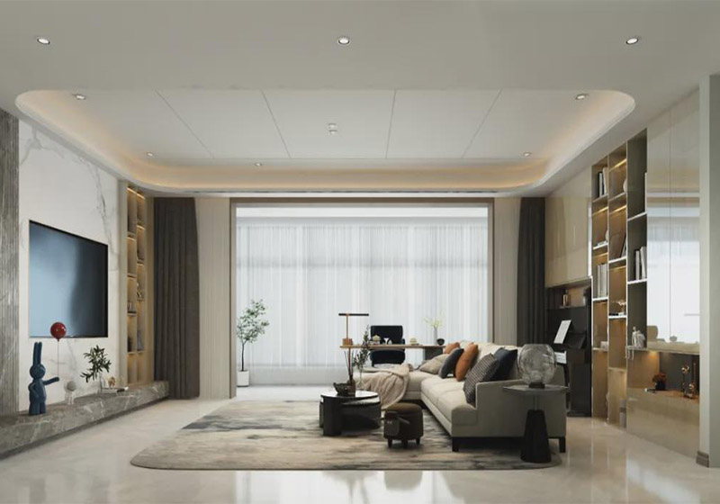 • 145㎡簡約風(fēng)三人居 無主燈設(shè)計+仿石材真get